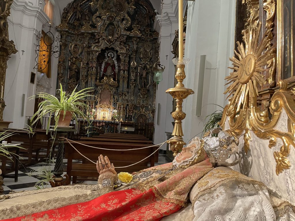 The Virgin of the Transit is a beautiful image by Montes de Oca, which is normally in cloister and is displayed in our church from August 15, the Feast of the Assumption of the Blessed Virgin, until August 22, the day of her Coronation as Blessed Virgin Queen.